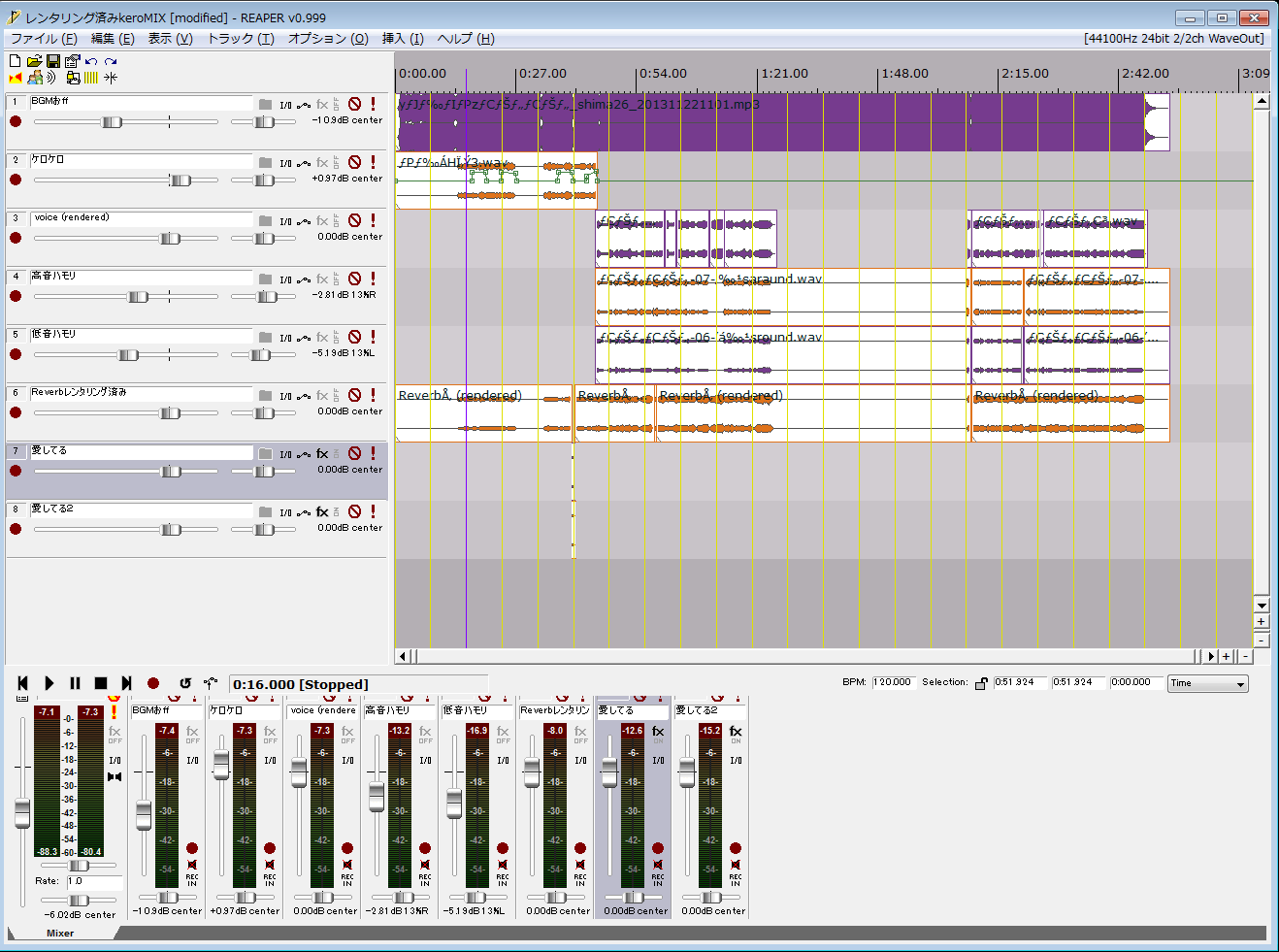 ではまずREAPERさんでの作業画面を見ていただきましょう。