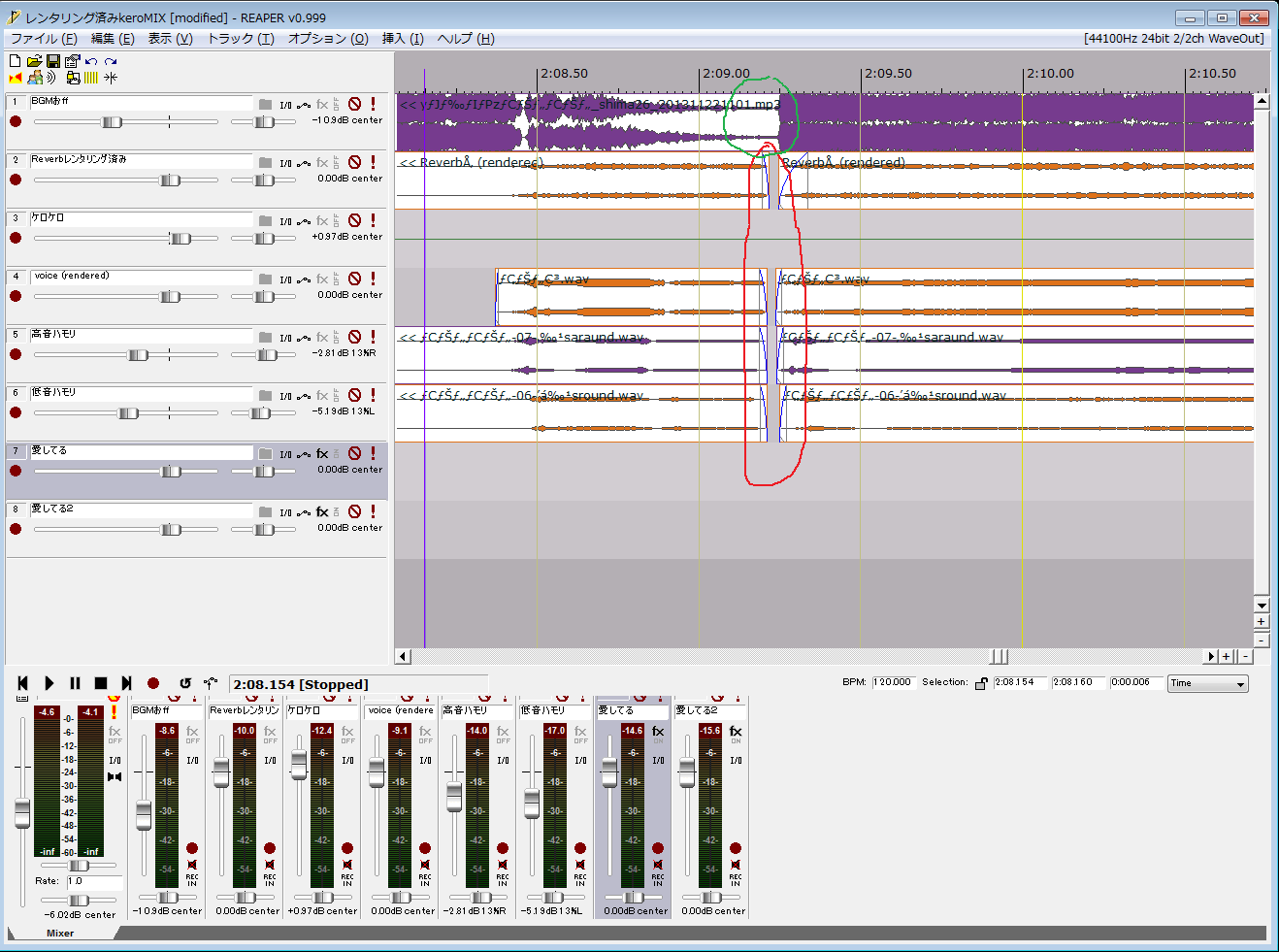 ではまずREAPERさんでの作業画面を見ていただきましょう。